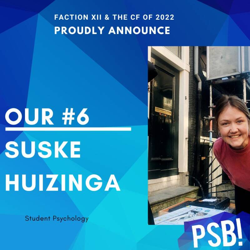 I am Suske, 21 years old and I'm in my first year of the study psychology (Dutch track) I live in Groningen for my second year now and I really love the city! besides study I like to hang out with friends, go to parties and I work at a coffee shop as a barista. I want to achieve more transparency with PSB so more people become involved with the faculty and I would love to see more attention given to the sustainability :)